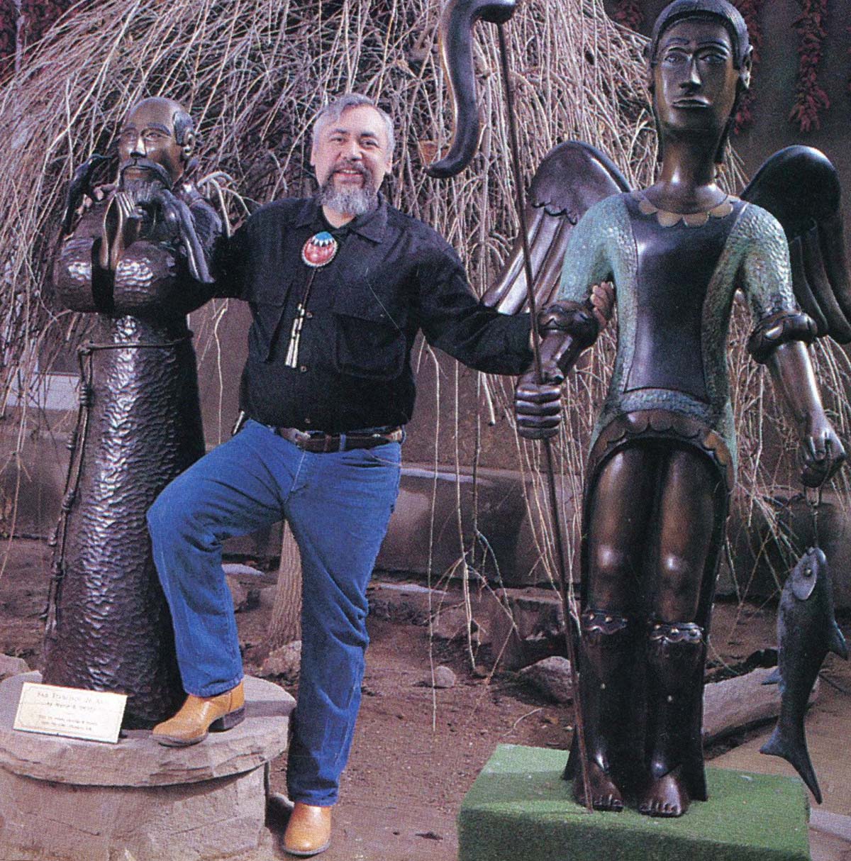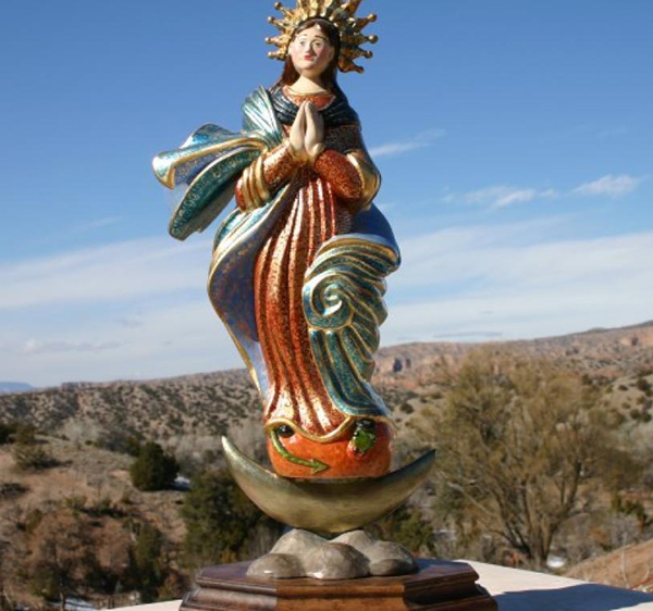 Marco A. Oviedo is a visionary woodcarver/sculptor who lives and works in Chimayo, New Mexico. The piñon-juniper dotted foothills of historic Chimayo provide a backdrop for the traditional folk art and unique contemporary bronze sculpture that Marco produces. Since the early seventies he has interpreted New Mexico religious folk art styles and southwest designs in his creations.