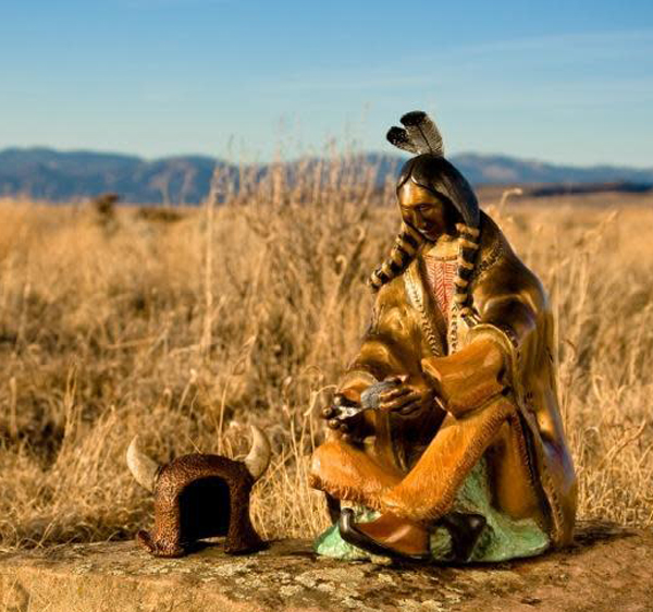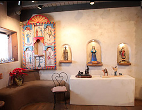 Visitors are welcome at a modern, hacienda style gallery that lies in the center of the property. The gallery displays much of Marco’s work which sometimes includes work by his sons. You can see at the glance the incredible diversity of Marco’s work, ranging from traditional Hispanic sculptures, to sculptures in tribute to the Native American culture, to whimsical and contemporary pieces. There is a selection in the gallery for any pocket book. Many people enjoy collecting the whimsically compelling “fetishes” that Marco created. Nearly all are under $100. Others enjoy the larger, coffee-table (or desk-top) display pieces which are also very affordably priced. All of Marco’s pieces, large and small, have the same high-quality craftsmanship and beautiful design.